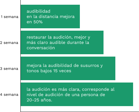 Segunda semana Las neuronas auditivas dañadas o muertas se recuperan. La audición y comprensión en conversaciones se vuelven más claras.